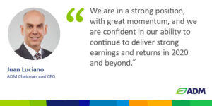 “This was another strong quarter for ADM. I am proud of our team’s excellent work, as their execution of our strategy continued to deliver results,” said Chairman and CEO Juan Luciano. “Through good and challenging times alike, we have kept a strong and steady focus on transforming and improving our company. Thanks to that work, and thanks to the ADM colleagues who have gone above and beyond to support our customers and the global food supply chain, we are delivering on our purpose by providing high quality nutrition around the world.