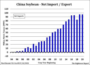 Soybeans traded lower. Some link the lower traded to lower China prices and concern China may not buy as much soybean as hoped. There may have also been some selling of soybean and buying corn and wheat. Nov soybean traded below initial support which could signal additional weakness technically. Weekly US soybean export sales is estimated near 200-550 mt old crop versus 257 last week and 600-1.200 mt new crop versus 3,344 last week. Food and Ag Commodity Economics estimated US 2020 soybean crop near 4,355 mil bu versus USDA 4.135 and Stones estimate of 4,496. They also estimated World 2020 crop near 371 mmt versus USDA 362. There is still concern that final US crop will be larger and increase the carryout over USDA 425. Central US Midwest could see rains August 10-18. July Brazil soybean exports were a record 10 mmt. Season to date exports are 69 mmt. 71 pct of Brazil soybean exports were to China.