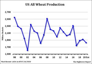 Wheat futures managed small gains. WU is back testing support near 5.00. Some feel key support is near 4.75-4.80. KC support could be near 4.05-4.10. Talk of higher Russia winter wheat yields has pushed US futures lower. Wheat futures tend to make bottoms in late September. Food and Ag Commodity Economics estimated US 2020 all wheat crop near 1,843 mil bu versus USDA 1,824. They est HRW near 712 versus 833 last year, SRW 280 versus 239 last year and spring wheat near 558 versus 563 last year. They estimated World wheat crop near 759 mmt versus 769 last year. They lowered EU crop 5.5 mmt. They increased Canada wheat crop 1.4 mmt to 35.6. They dropped Argentina wheat crop .8 mmt to 20.0. Argentina needs a rain. Weekly US wheat export sales are estimated near 200-800 mt versus 676 last week. US HRW export prices remain $10 above Russia prices.