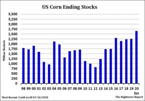 Corn futures traded higher. Some link the buying to short covering In front of the weeks USDA report. Managed funds have added to their net short position of late. Some also link the buying due to spread buying due to firm cash prices as US farmer remains a reluctant seller of corn. Weekly US corn exports were near 45 mil bu versus 28 last year. Season to date exports are near 1,540 mil bu versus 1,797 last year. USDA goal is 1,775 which may be high. The average trade guess for Wednesday US 2020 corn crop is near 15,170 mil bu versus USDA 15,000. This will be the first official NASS crop estimate. It will be only a farmer survey. Range of guesses is 14,925 to 15,401. The average trade guess for US 2020/21 corn carryout is near 2,800 mil bu versus USDA 2,648. Increase supply without equal increase in demand could continue to weigh on prices. There was talk that China continues to sell Wheat and rice from reserves for feed. Wheat prices were near $7.00 per bushel and $1.00 below corn prices. Some feel China could sell as much as 20-22 mmt of wheat and rice from reserves. China also reported that they could import feed for increasing Animal numbers.