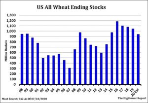 Wheat futures traded lower. French futures continued lower on Talk of higher Russia crop. There was also talk of lower Australia Prices due to their higher crop. Higher Australia crop could cut Into Canada exports to Asia. US export prices remain above Europe and Russia. Weekly US wheat exports were near 14 mil bu versus 26 last year. Season to date exports are near 186 mil bu versus 182 last year. USDA goal is 950. The average trade guess for US 2020 wheat crop is near 1,833 mil bu versus USDA 1,824.Key to wheat numbers is if USDA increases Russia, Canada and Australia crops and adds to already record World supplies. There was talk today that combined, Canada and Australia Could produce 22-24 mmt more wheat than last year. This also suggest that they could have 12-14 mmt more export than last year. Some feel WU could try to make a bottom in September near 4.70.