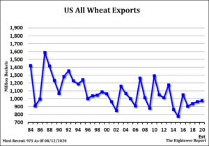 Soybean traded higher on concern about lower US 2020 soybean crop. There is concern that dryness across the Midwest and strong winds last week may have taken the top off the USDA record crop estimate. Trade expects USDA to drop the weekly US crop rating to 72 pct good/ex versus 74 last week. Pro farmer tour is this week. Today, in both SD and OH tour participants found more pods in fields than last year. The tour will report results from today tonight and travel through NE and IN tomorrow. Weekly US soybean exports were near 28 mil bu versus 42 last year. Season to date exports are near 1,504 versus 1,597 last year. USDA goal is 1,650 versus 1,752 last year. USDA estimates 2020/21 US soybean exports near 2,125. Nov soybean futures have traded over the 200 day moving average for the first time since Jan. Resistance is near 9.20. Farmers should increase 2020 cash sales.