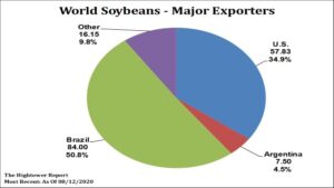 Soybean prices traded lower. Some link this to an improved US weather forecast and talk of higher US 2020 supply. Nov futures are back testing 9.00. USDA estimates that is 2020 World soybean crop will increase 33 mmt. US is up 22 mmt, Brazil 8 mmt and Argentina 4 mmt. There are also some that feel their demand outlook could also be high especially their estimate of US soybean exports. There is also talk that fact that Brazil farmers are getting record local currency for their soybean they could increase 2021 acres by 4 pct. Weather maps hint that late next week 65 pct of the Midwest could see .75-2.50 inches of rain. China announced that will begin US trade talks soon. Their appetite for energy, soybeans, wheat and corn suggest Covid is behind them and their economy is growing. Weekly US soybean old crop export sales were -.5 mil bu. Total commit is near 1,745 mil bu versus 1,786 last year. USDA goal is 1,650 versus 1,752 last year. New crop sales were 94 mil bu with total sales near 755 mil bu. USDA estimates US 2020/21 export near 2,125. Some feel that may be high.