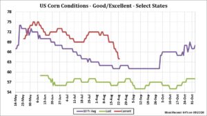 Corn futures traded higher and near session highs. Higher than expected drop in weekly US corn crop ratings and news that China bought US corn triggered massive fund short covering. Farmers were equal sellers of cash. Dec corn futures gapped open higher and will soon test last moving average resistance near 3.60. Some feel once the funds have covered their remaining short position futures could run into resistance. USDA dropped US corn crop rating to 64 pct good/ex. This was more than expected. Some now look for US final 2020 corn yield to be near 178 versus USDA 181.8. Most of the decline was in IA, MI, SD and OH. The lower yield suggest a drop in crop size of 326 mil bu. This could drop US 2020/21 corn carryout to closer to 2,430 mil bu. This remains adequate for demand. Covid reduced demand could limit further upside in prices. US farmers should consider adding to 2020 cash sales and starting to sell 2021 cash. USDA announced 408 mt US corn sold to China for 2020/21 crop year and 100 mt US corn sold to Japan for 2020/21 crop year. It remains dry over most of the US Midwest. Hurricane Laura will hit the US gulf coast Wednesday night and Thursday. This could bring heavy rains to parts of the south Delta. Weather forecast still suggest a cold front will bring .50-2.50 inches of rain across the central and east Midwest early next week. FH Sep weather maps suggest normal rains and normal to below temps for much of the Midwest.