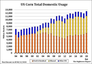 Corn futures traded again unchanged. Funds are trying to decide if prices are trading near where most feel US yield will be or will the yield be higher? Or lower? There were no new US corn export sales announced today. Weekly US ethanol productions was down 1 pct from last week and down 9 pct from last year. Stocks were up 2 pct from last week but still down 12 pct from last year. Margins are improving. Some feel USDA could increase US 2019/20 corn use for ethanol. Others feel USDA 2020/21 corn use for ethanol may be too high. US gasoline demand has not yet rebounded due to Covid. Weekly US corn export sales are estimated near 1,500-2,500 mt versus 1,180 last week. Another crop analyst estimated US 2020 corn crop at 14,980 and a yield near 178.28. Food and Ag Commodity Economics (Informa) will be out Friday with their estimate. They have been using a corn crop near 14,828 mil bu, yield near 176.5 and US 2020/21 corn carryout near 2,496 versus USDA 2,756. US Midwest 7 day weather forecast suggest below normal temps and normal to above rains. One model puts the rains in west states. The other is cooler and puts rain in the east. US Midwest second week US weather forecast suggest above normal temps and below normal rains. Bears feel nearby corn futures are near season highs. Still talk of big US Q4 corn exports could offer support near key resistance. Even though futures are overbought, corn tech signals are positive.