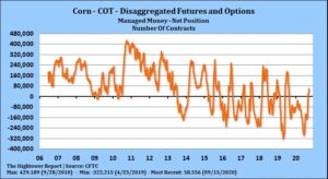 Corn futures traded lower despite better than expected weekly US export sales. Some of the selling was linked to profit talking and squaring positions before US harvest. Most still feel US farmer may try to store as much of the harvest as they can. This years crop is also slow to dry down so farmers are waiting for the crop to dry down. US Midwest 2 week and 30 day forecast is for below normal rains and below normal temps. China corn futures continue to trade lower as they also begin to start their harvest. Weekly US corn export sales were 2.1 mmt. Total commit is near 22.5 mmt versus 9.1 last year. USDA goal is 59.0 mmt versus 44.8 last year. USDA estimate World corn trade near 186.0 mmt versus 170.3last year. China imports are estimated near 7.0 mmt versus 7.0 last year. US corn sales to China is near 9.8 mmt. There is also 2.8 mmt in unknown for a total of 12.6. Some feel China could take 15.0 mmt US corn. Central Brazil and most of Argentina remain dry. Argentina lowered their 2021 corn crop to 47.0 mmt from USDA 50.0 due to dryness. Argentina farmer may have also reduced planted acres due to lower net returns. US hog report showed hog numbers near 101 pct of last year. Cattle on feed should show placements near 103 pct of last year. Some feel CZ range will be 3.40-3.80 through the end of November.