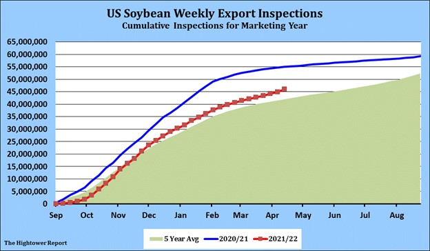 Corn futures ended lower. Some feel Corn futures may be overbought and due for a correction. USDA released a lot of numbers Monday. US corn exports are down 16 pct versus last year. US corn planting is 4 pct versus 6 average. This week should be wet and cool and could delay planting. Next week looks drier but could still be cool. Most feel forecast suggest US farmers will get the intended corn acres planted on time. Even with futures near 8.00 higher demand for US exports, ethanol and feed Suggest futures should go higher. There are reports that there are 57 grain and oilseed vessels locked in Ukraine ports. This is equal to 1.25 mmt of grain. War continues and now is escalating in east Ukraine. Some fear this grain could begin to spoil. USDA lowered Ukraine corn exports to 23.0 mmt and raised stocks to 6.5 mmt. Some feel exports could be below 20.0 mmt. USDA estimates US 2021/22 corn exports near 63.5 mmt vs 69.9 ly. Some could see final exports closer to 70.0 mmt. USDA estimates US corn end stocks near 36.5 mmt v 31.3 ly. Some feel final stocks could be closer to 29.2.