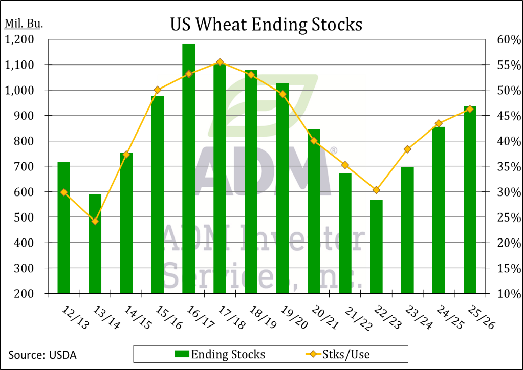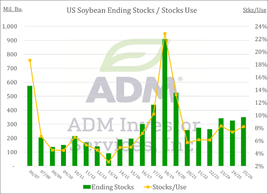 - US ending stocks rose 7 mil. bu. to 938 mil. slightly above expectations and a 6-year high