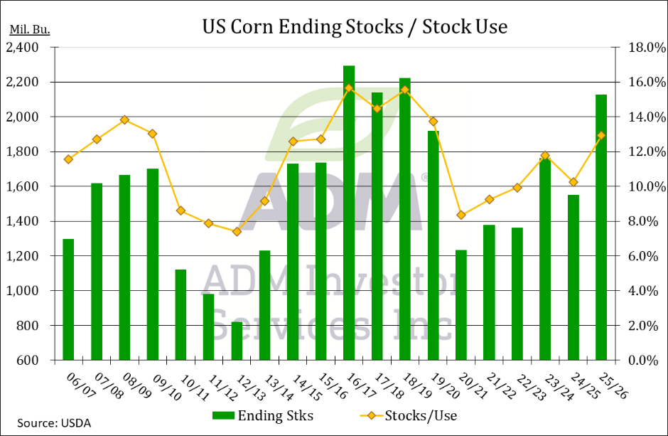 - US ending stocks left unchanged at 2.127 bil. bu. a 7-year high