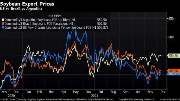 Soybeans ended higher. Nearby soybean futures weekly range was 12.59-12.76. Key 50 day moving average resistance is near 12.84. Nearby soymeal futures weekly range was 368-380. Like soybeans, key resistance for soymeal is near 382. Nearby soyoil futures made a new weekly low. Range was 53.59-58.35. Some feel big soymeal move up vs soyoil could be near an end. Some feel in January, USDA could lower the final US 2021 crop and offset an expected decline in exports. Trade is also watching the fact that 30 pct of the South America 2022 crop is seeing drier than normal weather analyst est US 2021/22 soybean carryout near 375 mil bu vs USDA 340. Analyst est US 2022 soybean acres near 87.6 and carryout near 400.