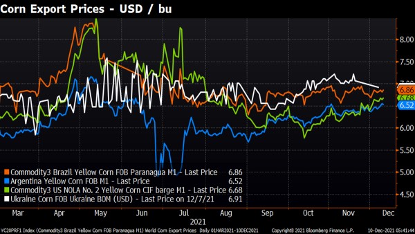 Corn futures ended lower. Corn futures is seeing some long liquidation after recent increase in Managed fund buying and fact USDA did not lower US carryout or raise US demand. Fact USDA raised Ukraine supply may be offering resistance to futures. US domestic cash remains strong and offers support on breaks. End users and importers need to add to 2022 coverage. Some feel in January USDA could lower 2021 US crop and raise demand. Most analyst look for US carryout to be near 1,300 mil bu and CH to eventually trade over 6.00. Nearby corn futures made a new weekly high. Range was 5.85-5.95. Trade over 5.90 is supportive. Trade over 5.96 could suggest a new higher trend. Nearby corn futures gained on CZ22. Most of the friendly news is in the nearby. Normal 2022 US summer weather suggest strong resistance near 5.70 CZ22. Rains in California, snow in Rockies and rains in east Midwest linked to La Nina and strong PDO. Some feel this combination could suggest a dry US plains spring and US Midwest summer. This week, USDA raised World corn crop 4 mmt due to higher Ukraine and EU crop. They also raised domestic feed use 3 mmt and exports 1,4 mmt.
