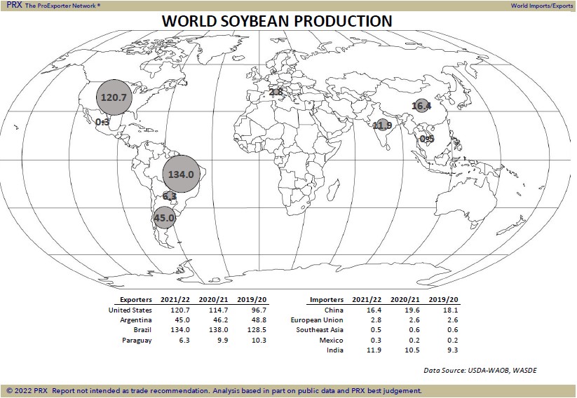 Soybeans and soymeal may be hitting the pause button after yesterdays gains. SK is near 16.00 and 450 SMK. Weekly US soybean export sales were 1.3 mmt old crop and 1.5 mmt new. Total old crop commit is near 48.1 mmt vs 59.6 ly. USDA goal is 55.8 vs 61.5 ly. Trade still has to figure out how to replace the possible drop in SA soybean crop of 36-37 mmt and what price it may take to ration demand. USDA estimates World soybean crop at 364 mmt vs 366 ly. Of the total, Brazil is 134, US 120 and Argentina 45. Total crush demand is 320 mmt with China 94, US 60, Brazil 47 and Argentina 40. World exports are 165 mmt vs 164 ly. Brazil 90 and US 55. Brazil was 81 and US 61 last year. One can see how important SA crops are to demand. Prices should trend higher to ration demand.