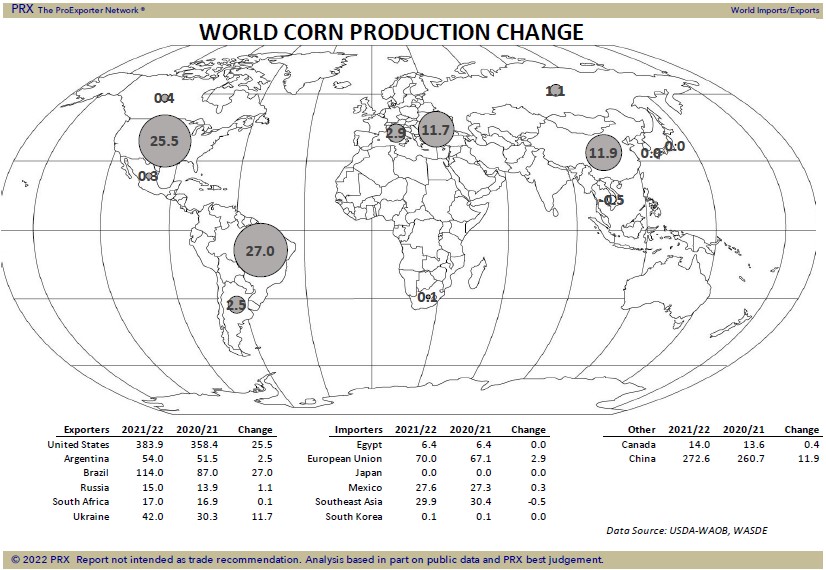 Corn futures may also be on hold. CK is near 6.46. Option volume and volatility is on the rise both calls and puts. Some estimate US farmer has sold 75-80 pct of the 2021 crop and 25 pct of the 2022 crop. Most feel he will continue to sell on rallies. Weekly US corn export sales were 820 mt. Total commit is near 46.5 mmt vs 58.5 last year. USDA goal is 61.6 vs 69.9 ly. Trade still has to figure out how to replace the possible drop in SA corn crop of 23-25 mmt and what price it may take to ration demand. USDA estimates World corn crop at 1,205 mmt vs 1,123 ly. Of the total, US is 384, China 272, Brazil 114, Argentina 54 and Ukraine 42. Total domestic feed demand is 751 mmt with China 214, US 143, EU 59 and SE Asia 40 mmt. World exports are 203 mmt vs 180 ly. US 61, Brazil 43, Argentina 39 and Ukraine 33. One can see how important SA and Ukraine crops are to demand. Prices should trend higher to ration demand. Chicago Fed Reserve latest Ag letter estimated 2021 farm loan demand Index fell for the 4th straight year and the lowest since 1986. Q4 farmland yoy values were up 30 pct in IA, 22 pct in IN and 18 pct in IL and 8th consecutive quarter of gains in farmland values. 2WD tractor sales were up 10 pct, 4WD up 120 pct, combines up 126 pct.