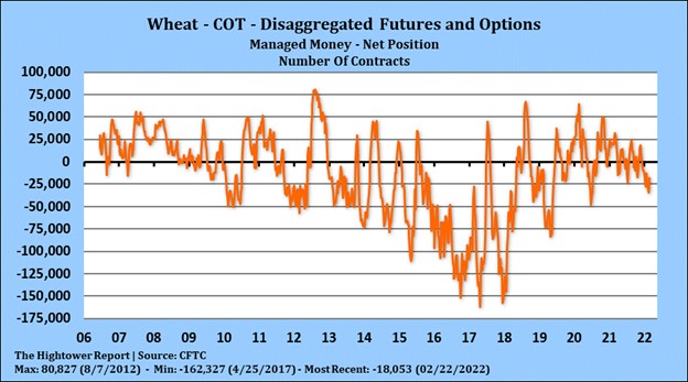 Volatility continues to increase in wheat. On Friday, WK had a wide range from 8.59 to 9.60. WK is near 9.34. KWK had a range of 8.91 to 9.81. KWK is near 9.54. MWK range was 9.60 to 10.62. MWK tested todays low at the 20 day moving average near 9.70 and ended near 9.94. Russia continues to invade Ukraine. Ukraine continues to fight. Large Russia military force is heading for Ukraine capital. There is talk that Russia grain export ports are closed. There is also talk that Ukraine grain ports are mined and closed. Some open Black Sea grain sales are being washed out. Weekly US wheat exports were near 15.0 mil bu versus 12.6 last year. Season to date exports are near 569 mil bu vs 666 last year. USDA goal is 810 vs 992 ly. Trade estimates US 2021/22 wheat carryout at USDA 648. Some feel total World wheat trade could be down 440 mil bu from USDA due to lower Russia and EU exports.