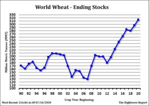 Wheat futures traded mixed. Chicago SRW traded higher. KC HRW traded lower. MLS HRS traded unchanged. USDA July numbers were in line with expectations. USDA dropped US 2020 wheat crop to 1,823 mil bu from 1,877. HRW crop is 710 mil bu vs 833 ly. SRW is 280 vs 239 ly. HRS is 502 vs 522 ly. USDA raised the US 2019/20 carryout to 1,044. USDA also dropped 2020/21 feed 10 mil bu. All of this raised US 2020/21 wheat carryout from 925 to 942.HRW is 423 vs 521 ly. SRW is 103 vs 105 ly. HRS is 270 vs 280 ly. USDA dropped World 20/21 wheat end stocks to 315 mmt versus 316 previous and 297 last year. This due to 1.5 mmt drop in EU crop and .5 in Russia. USDA continues to estimate World wheat trade near 188 mmt. Russia is 36 mmt, EU 27 mmt, US 25, Canada 24, Ukraine 17.5 and Australia 17.5. Fact USDA announced new US HRS and HRW wheat sales to China failed to support prices.