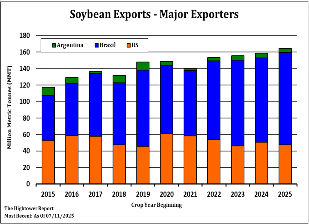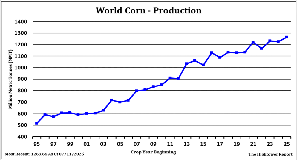 CU ended near 4.01. CU tested the 20 day moving average. Some look for CZ to test 3.40 as harvest low as long as US Midwest weather remains favorable. Trade will be watching US tariffs especially EU and China closely. USDA est World 24/25 corn crop at 1,225 mmt vs 1,230 ly. World domestic feed use is est at 784 mmt vs 770 last year. Exports are est at 192 mmt vs 192 ly. This leaves end stocks at 284 mmt vs 315 ly. USDA est World 25/26 corn crop at 1,265 mmt. World domestic feed use is est at 801 mmt. Exports are est at 195 mmt. This leaves end stocks at 272 mmt. Weekly US old crop export sales were 643 mt. Total commit is 70.1 mmt vs 55.0 ly. USDA announced 135 mt US 25/26 corn to S Korea, 200 mt US 25/56 corn to unknown and 84 mt US 24/25 corn also to unknown.
