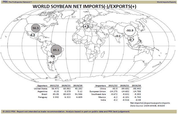 Soybeans ended higher on talk of lower South America supply and higher US soybean demand. Soymeal futures made new high. Weekly US soybean export sales were near 81 mil bu. Total commit is near 1,924 mil bu vs 2,217 last year commit is down 13 pct from last year. USDA goal is 2,090 vs 2,261 last year or down 8 pct. New crop sales were 33 mil bu. Total new crop commit is a record 281 mil bu. Since December, USDA has dropped the South America soybean crop 350 mil bu. At the same time, USDA has raised soybean exports only 40 mil bu and dropped US soybean carryout only 55 mil bu. Some feel final exports could be closer to 2,170 mil bu which would suggest a carryout closer to 205 mil bu. This could suggest higher soybean futures. Same group estimates US 2022 soybean acres near 89.0, crop of 4,540, 2,300 crush, 2,300 exports and a US 2022/23 soybean carryout near 75 mil bu vs USDA Outlook 305. CONAB estimated the Brazil soybean crop at 122.7 vs USDA 127.