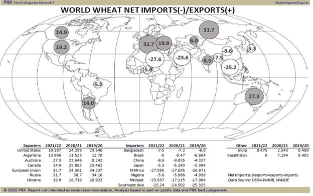 Wheat futures ended sharply lower. WK ended down 115 cents and near 10.85. Session high was 12.21. KWK ended down 48 cents and near 10.65. Session high was 11.51. MWK ended down 27 cents and near 10.56. Session high was 11.20. Speculative traders were sellers on talk of lower World demand and fact USDA did not lower World stocks. USDA increased World wheat production 3 mmt, mostly Australia, dropped imports 3 mmt, mostly EU and N Africa, increased feed use 2 mmt, mostly Ukraine? Australia and SE Asia, dropped exports 3.5 mmt, Australia up 2 mmt, India up 1.5 mmt, Russia down 3 mmt and Ukraine down 4 mmt. Some feel that Russia, Ukraine and EU wheat exports could drop a total of 15 mmt. This would tighten World exporters stocks to use ratio and turn futures higher. USDA also increases World wheat end stocks 2 mmt. Some see US 2022 wheat acres near 48.0, crop 1,915, exports 925 and carryout near 515. World Weather could see US south plains dry ridge developing mid April. Some Are forecasting US 2022/23 HRW carryout below 200 mil bu vs 351 this year.