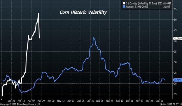 May soybeans ended lower. SK ended near 16.70 with a range of 16.61 to 16.97. Failure to close over 17.00 offers resistance. Soymeal gained on soyoil after Argentina stopped soymeal export licenses. On March 9, USDA estimated Argentina soymeal trade near 28.0 mmt vs 28.3 ly. Argentina is the World’s largest soymeal exporter. USDA estimated Argentina soybean crop at 43.5 mmt vs 46.2 ly. Some are as low as 39.0. Lower energy trade could be weighing on soyoil. May soybean crush margin tested new high near 221 cents. Most commodities are lower on concern higher China covid cases could slow China commodity demand. Drop in South America 2022 soybean crop could be positive to soybean futures. Weekly US exports were 28 mil bu vs 20 ly. Season to date exports are 1,548 mil bu vs 1,959 ly. Key USDA March 31 acreage and stocks report will be next USDA report.