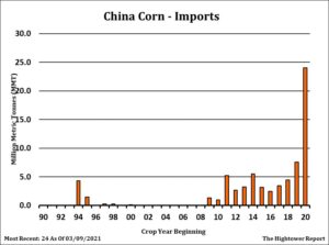 Corn futures traded mixed. Talk of record weekly US export sales and slow US farmer selling supported the nearby May, Guesses of higher US 2021 US corn acres and potential supply is offering resistance to new crop Dec. Some feel strong US domestic corn basis suggest that US may be overusing the 2020 corn supplies. The inverse could also suggest that next weeks USDA estimate of US 2021 March soybean stocks could be bullish. It also suggest the acreage report could be negative. Farm Futures estimated US 2021 corn acres near 93.6 million acres. Earlier this week, Informa estimated corn acres near 94.3 versus 90.8 last year. Inverse could also suggest that US elevators and farmers may have already sold most of the US 2020 supplies. As US 2021 planting season nears, US farmers will be less willing to sell any remaining inventories. Inverse also reduce the amount of new crop 2021 US soybean crop Farmers are willing to sell. Weekly US corn export sales are estimated near 3,800-4,700 mt versus 985 last week. Last week, total commit was near 60.6 mmt versus 29.0 last year. USDA goal is 66.0 versus 45.1. China commit was near 19.3 mmt with 4.6 in unknown. Many feel China corn imports will be closer to 33-35 mmt versus USDA guess of 24.0. Some also feel final US exports could be higher than USDA which could drop the US carryout below 1,000 mil bu versus USDA guess of 1,502. Weekly US ethanol production down from last week and last year. Stocks were up from last week and down from last year. Margins are improving.