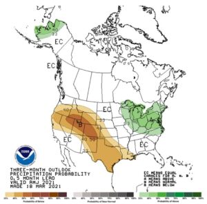 Wheat futures traded lower. Recent rains across the US south plains has improved the US 2021 HRW crop outlook. The crop will still need timely rains especially late in April to be made. Same weather pattern is dry across US north plains. There is already talk of lower US HRS acres versus last year. Interesting to note that NOAA upgraded the America weather model. They thought that the model was too cold this winter. Yesterday’s new America model had very cold weather pattern for much of US SRW crop late next week. Today’s map is not as cold. Uncertainty over Russia 2021 crop and export policy could support wheat futures. Narrowing of wheat/corn futures spread could suggest US wheat feeding could exceed USDA guess of 125. Some could see feeding closer to 190. Largest US wheat feed/residual was 480 in 1990/91.