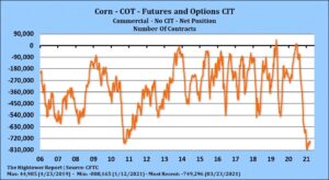 Corn futures traded lower. Managed funds continued to reduce their net long before USDA acreage and stocks report. Last year, USDA March guess for acres were near 97.0 with final acres near 90.8. Wet spring increase prevent plant acres especially in NW. 97.0 million acres could reflect farmer good cash position and willingness to increase acres to increase potential income. Last year, US net farm income was up but mostly due to Covid payments. Payments this year could be less. Trade estimates US 2021 corn acres near 93.2 with a range of 92.0-94.5.  There is also some fear that USDA could find bushels on their March 1 stocks. Over last 16 years, stocks have been above trade guess 10 times an average of 137 mil bu and below 6 years 141 mil bu. Key could be quarterly feed and residual. Most est feed 1,345 mil bu. recent range has been 1,191-1,528. FSI is est near 1,514 vs 1,712 ly and exports 670 vs 355 ly. Weekly US corn exports were near 66 mil bu. Some look for exports to average 69 per week with final exports near 3,000 mil bu versus USDA guess of 2,600. Season to date exports are 613 mil bu above ly versus USDA guess a 772 increase. Brazil corn crop is 98 pct planted. Weather remain dry.