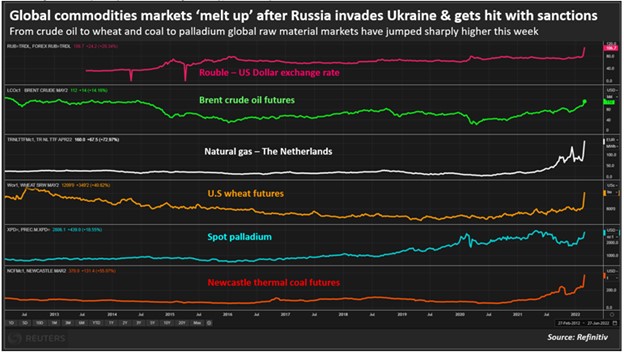 Corn futures ended higher but off session highs. Wheat futures shorts have also been buying corn futures with wheat futures up the limit. Fact back month Chicago wheat, KC wheat and Mpls wheat started trading today triggered some selling in corn. Trade will be watching March 9 USDA report. Some feel because the South America corn crop is lower and Ukraine is not shipping corn, USDA should increase US corn demand and lower the carryout. As much as 15 mmt of Ukraine corn may be shipped. South America corn crop could drop 10 mmt. Current dry pattern over C Brazil could drop the supply even more. There was talk that South Korea feed producers declared force majeure and cannot deliver feed to customers underscores the problem with lack of Ukraine corn exports. There is some talk due to the war, Ukraine may either not get their 2022 crop or it may be planted late. The challenge is also lack of transportation, logistics destruction, lack of seed, fertilizer and fuel, lack of spare parts and job shortage. US spring insurance corn price was near 5.90 and second highest to 2011. The 2.43 soybean/corn ratio would suggest 1-2 percent lower US 2022 corn acres. That could be why Dec corn futures gained today versus the May. CRB commodity Index had largest weekly gain since 1960. World food prices are at all time highs and up 24 pct from last year.