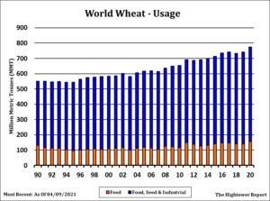 Wheat futures rallied and closed near session highs. Overnight trade was lower on what some termed profit taking. Weekly US export sales were negative and US export prices are still a premium to EU and Russia. Sharp gains in corn helped wheat rally into the close. Wheat cannot afford to be cheaper that corn or World feed demand will increase over supply. USDA May supply and demand report is approaching. Trade looks for US 2020/21 wheat carryout to be near 850 mil bu vs USDA 852. Trade estimates US 2021 wheat crop near 1,877 mil bu vs 1,826 last year. Winter crop 1m259 vs 1,171, HRW 711 vs 659, SRW 309 vs 266 and white winter 238 vs 246 ly. Spring forecast still suggest dry PNW and NA HRS areas. Drier west HRW and normal rains for SRW. EU weather is improving with new rains. Russia and parts of east EU are too wet. Weekly US old crop wheat sales were a negative 95 mt vs 223 last week. Total commit is near 25.5 mmt vs 26.1 last year. Baltic wheat is $7-10 below Russia, $35 below corn and $50 below US HRW.
