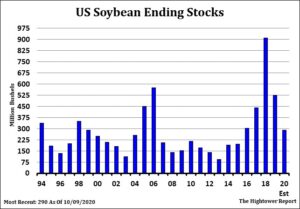 Soybeans traded higher. Managed funds bought 5,000 soybeans, 3,000 soymeal and 2,000 soyoil and 1,000 corn. We estimate Managed funds are net long 243,000 soybeans, 93,000 soymeal and 99, 000 soyoil. US Midwest 2 week forecast calls for normal to above temps and below normal rains. Trade estimates US soybean harvest 94 pct done. There continues to be signs that over the next 2 weeks, rainfall in Russia, South Brazil and east Argentina will be less than normal. USDA announced 123 mt US soybeans to unknown. Argentina dock workers announced a surprised strike that is effecting loadings. Weekly US soybean exports were near 92 mil bu versus 87 last week and 49 last year. Season to date exports are near 715 mil bu versus 400 last year. USDA goal is 2,200 versus 1,676 last year. Some feel exports could reach 2,560. This and a lower US 2020 crop could help push futures higher. USDA report tomorrow. Trade estimates US 2020 soybean crop near 4,251, versus USDA 4,268 mil bu. Trade estimates US 2020/21 soybean carryout near 235 mil bu versus USDA 290.