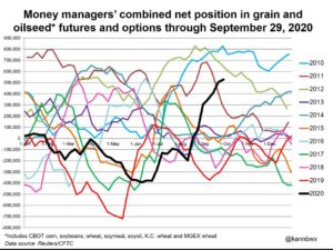 What a week. Bullish USDA report, global weather unknowns and POTUS testing positive for Covid. Soybeans, soyoil and corn traded lower. Soymeal and wheat traded higher. US stocks were mixed after opening lower. US Dollar was higher. Crude was lower.