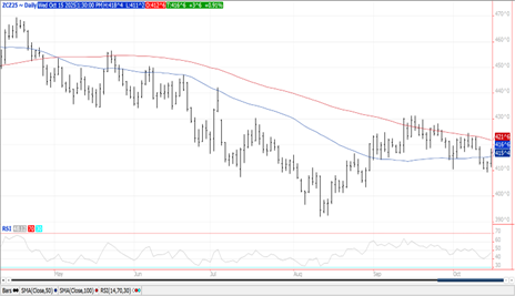 Prices were $.03-$.04 higher in choppy 2 sided trade. Spreads also firmed. Dec-25 plowed thru its 50 day MA at $4.15 ½ with next resistance at the 100 day at $4.21 ¾. The trade expects production to range from 309-316 mil. gallons vs. 315 mil. the previous week and 306 mil. gallons YA. We had speculative traders buying just over 5k contracts yesterday cutting their net short position to roughly 125k contracts. Taiwan reportedly bought 65k mt of US corn at $1.73 over Mch-26 futures for Dec/Jan shipment. South Korea bought 131k mt of corn just below $235/mt CF from either US or SA origin. For now Dec-25 corn likely to remain rangebound between $4.05-$4.35. The best chance for a near term rally would be if US production is well below the current USDA forecast of 16.814 bil. bu. Without a drought this winter in SA it’s hard to envision US demand growing much from the current record USDA forecast at just over 16 bil. bu.