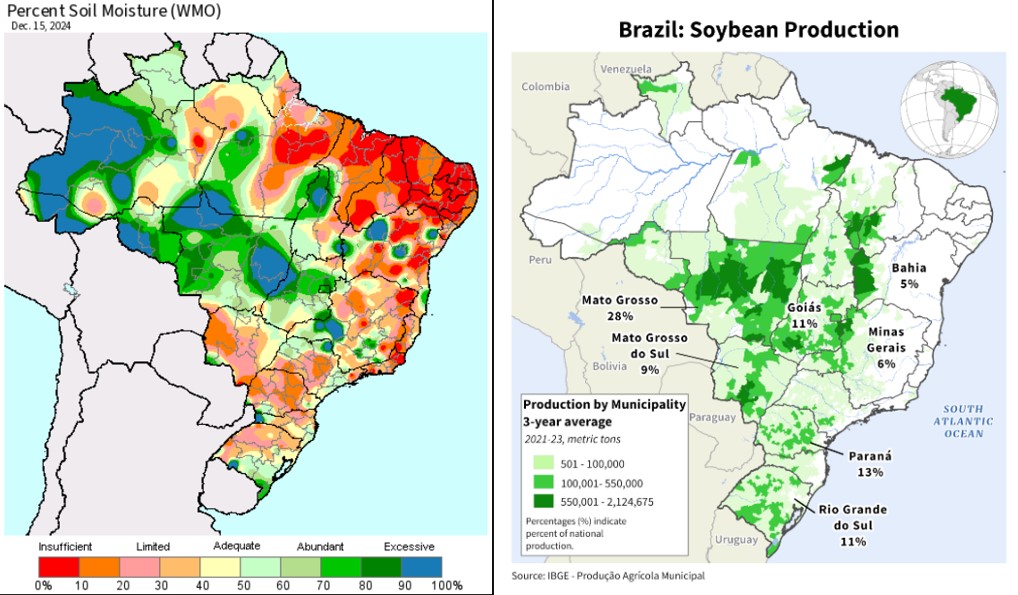 Soil Moisture Map of Brazil as of December 15th shows most of the major growing areas are in great shape in the heart of their growing season.