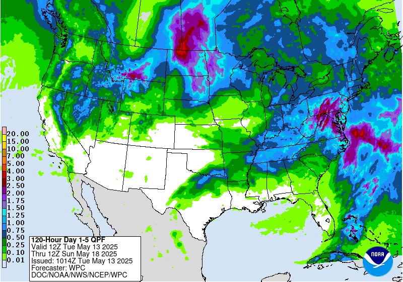 Ag Fundamentals: New crop corn endings stocks were reported at the bottom of the estimate range, at 1.8 billion bushels. That is a bold statement from the USDA about demand for the coming year seeing they are projecting a 15.8 million bushel corn production in the US. 95.3 million acres is the most corn planted in over 10 years. Corn prices are lower this morning as doubt creeps in about the bullish report yesterday, down over 3¢ at the pause. Soybeans rallied off the US/China trade cooler news from Sunday and extended into the close as a neutral to slightly bullish report took away some headwind. Domestic crush was reported 70 million bushels higher for new crop soybeans, which lead the balance sheet to an overall increase of 31 million bushels for new crop demand. Winter wheat conditions improved overall, but dropped in South Dakota and Nebraska. Kansas, Texas and Oklahoma are the main three winter wheat producing states and they all improved. Russia is expected to lead in global wheat exports with the USDA estimating they will export 45 MMT in 25/26 vs. the 43.5 MMT 24/25. Wheat prices feeling the strength of the dollar index, still above 101.00 this morning.