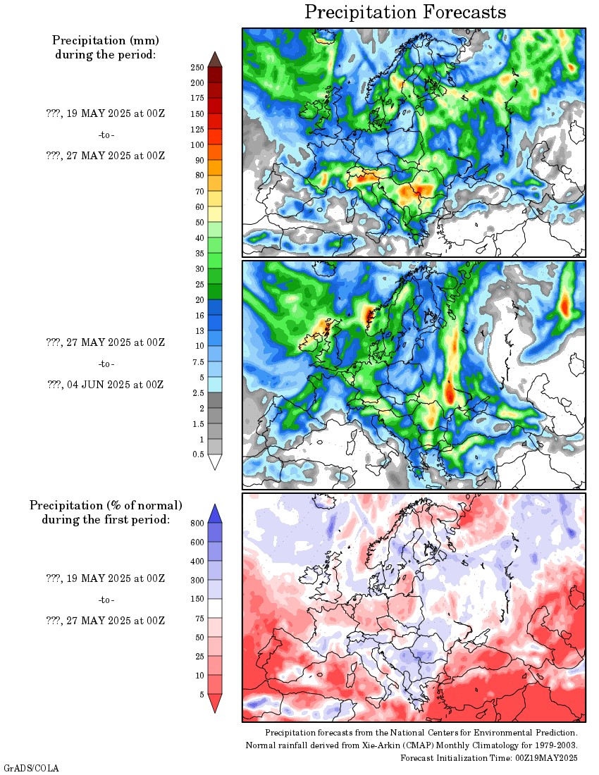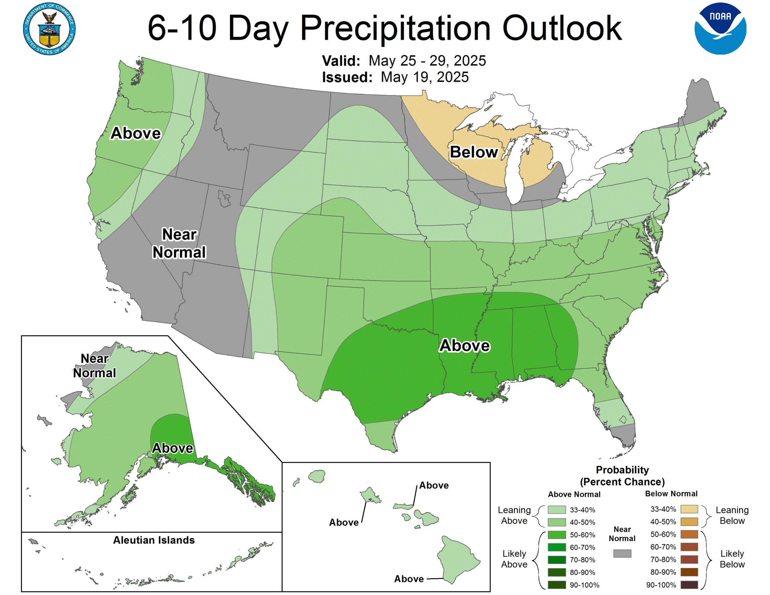 Rain makes grain. Precip this morning is covering the southern Mississippi River Valley, Arkansas, eastern Kansas, Missouri, Most of Illinois, Indiana, Iowa, and Minnesota. Basically the majority of the US growing regions. Planting progress likely to take a couple days off in some areas to let the fields dry. US producers were able to gain 16% corn planting progress last week to put them at 78% done, 5% ahead of the 5-year average pace. Soybeans advanced 18%, now at 66% done, to put them 13% ahead of their 5-year pace. Areas getting rain today will receive 1-2 inches and should be back in the fields by the weekend. However, Missouri and some of the southern growing regions will receive more rain Saturday that will put most of southern Missouri out for a few more days.