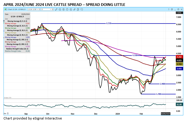 Slow trading day on Tuesday for Live Cattle. Cattle futures remain in the sideways range that began on February 16th. Traders are trying to figure out what will happen to cattle prices as packers cut kill.