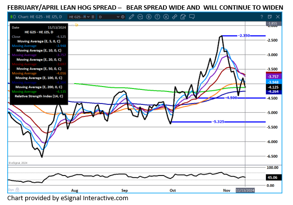 The price between the CME Lean Hog Index is widening to December Lean Hog futures and the CME Pork Index is narrowing to the CME Lean Hog Index. This is packer negative. Cash hogs and cash pork are also moving lower.