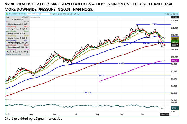Tuesday’s trade volume in LC was active as it was Monday. Monday, traders were bull spreading and Tuesday traders did the opposite. At current high prices in 2023 demand for trimmings and ground beef have increased. Going into the holidays will demand be as strong as a year ago and after the holidays at what prices are consumers going to say beef prices are too high as many consumers are already saying as they buy cheaper cuts and lower graded beef.