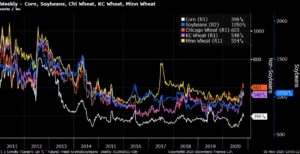 Wheat futures traded higher. Some linked the buying to talk that cold and dry weather could stress the Russia wheat crop. There was also talk that China sold 2.7 mmt wheat from the reserve. Most of the buyers were feeders. Average prices was near $9.57. Wheat may have also been supported by new global demand of 1.0 mmt with Turkey, Syria and North Africa demand improving. EU dropped their corn crop to 60.0 mmt versus USDA 66.0. Will this increase EU wheat feeding. Managed funds are net buyers of 4,000 wheat. We estimate Managed funds are net long 39,000 wheat. US Midwest 2 week forecast calls for normal to above temps and below normal rains. There continues to be signs that over the next 2 weeks, rainfall in Russia, South Brazil and Argentina will be less than normal. US Winter wheat crop rating could be 45 pct good/ex versus 41 last week. Weekly US wheat exports were near 10.5 mil bu versus 14.5 last week and 10.8 last year. Season to date exports are near 417.8 mil bu versus 401.1 last year. USDA goal is 975 mil versus 965 last year. Key for final US exports could be EU , Russia, Ukraine, Australia and Canada exports versus demand and US and Russia 2021 supplies.