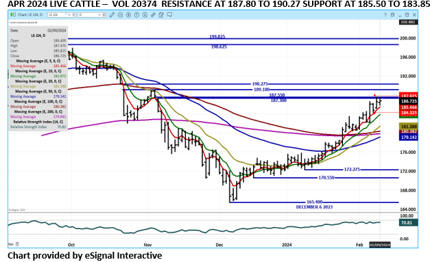 Live Cattle futures ended the day on Friday mixed to near unchanged. February closed up on stronger cash news. April was just slightly higher with traders expecting fewer cattle and strong beef demand for spring. Volume was light.