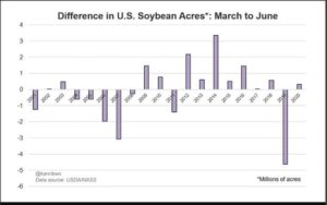 The U.S. Department of Agriculture on Wednesday delivered a stunning set of numbers yet again, this time significantly lighter corn and soybean plantings than expected, and that locked Chicago-traded futures up the daily limit. U.S. farmers will have another chance in early June to tell USDA what they planted or still hope to plant, and odds are decent that those acres will come in higher than they did on Wednesday, though the rise may not be large enough to ease supply worries. Perhaps the biggest concern for the market is the 87.6 million acres of soybeans that U.S. farmers intend to plant this spring since supply relative to demand is predicted to drop to an all-time low later this year, representing less than 10 days of use.