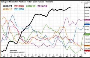 We estimate Managed Money net short 9,000 contracts of SRW Wheat; net long 427,000 Corn; net long 166,000 Soybeans; long 68,000t Soymeal, and; net long 94,000 Soyoil.