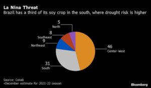Parched conditions and heat led Parana’s agriculture agency Deral to cut its estimate for output in the state by 12% on Wednesday, and more may be coming if adverse weather continues, said Marcelo Garrido, an economist at Deral. The prospect of a second straight La Nina trimming what’s otherwise expected to be a bountiful harvest is helping boost soybean prices and adding to worries over global food inflation.