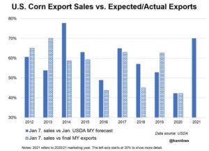 Corn sales up 135%, shipments up 77% with USDA up 43%
