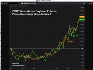 Wire story reported Chicago-traded corn and soybeans ended 2020 with a bang and the fireworks have continued into 2021. The unprecedented rally has many traders and analysts cautiously anticipating where prices will head next, and rewinding the clock by a decade might reveal some possibilities.