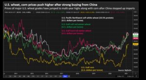 China is scooping up supplies of U.S. white wheat to feed livestock, pushing export forecasts for the grain usually used to make sponge cakes and noodles to a 27-year-high. The purchases are the latest disruption in commodities markets caused by Chinese buying of grains and oilseeds during the coronavirus pandemic, pushing prices of major commodity crops to multi-year highs. China has booked more U.S. white wheat this year than any country besides the Philippines, the top buyer of the grain. While U.S. producers have long tried to woo the growing Chinese market for confectionary foods made from white wheat flour, the recent purchases reflect a need for animal feed. While white wheat is not typically fed to animals, high corn prices – benchmark U.S. futures hit 7-1/2-year highs last month – made it a viable alternative in China. Nine months into the 2020/21 wheat marketing year begun June 1, 2020, China’s purchases of all U.S. wheat classes are at a seven-year high of 2.9 million tonnes, according to USDA’s weekly export sales.