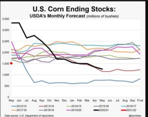 Strong domestic demand will keep U.S. stockpiles of corn and soybeans near seven-year lows even after farmers harvest the crops they are currently seeding, the government said. The stocks estimates were in line with market expectations but the report showed that the recent gains in ag commodities, highlighted by soybean futures to a nearly nine-year high this week, are likely to continue.