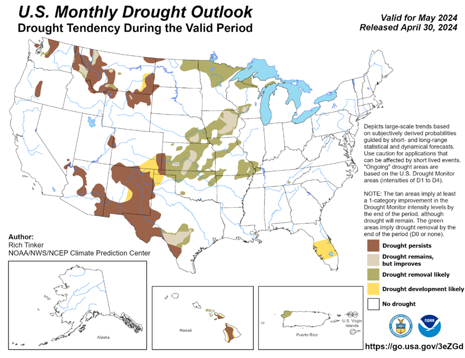 Northern Plains: The region will see more widespread showers this week as a system moves through on Tuesday with another for Wednesday and Thursday and yet another this weekend. The active weather will make it difficult to get out into the field in some areas, but help to ease the remaining drought and add soil moisture.