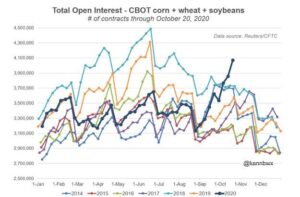 Strong global demand and ideas China may significantly increase grain and oilseed imports beyond already elevated levels kept speculators buying Chicago-traded grains and oilseeds last week; open interest also rose along with futures prices and fund optimism.