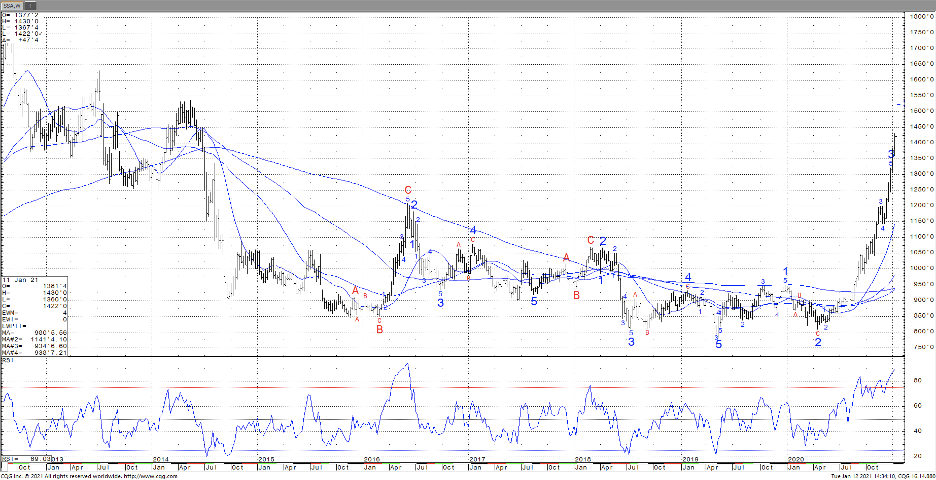 Soybeans and soymeal traded sharply higher after USDA Jan report. Soybeans were trading higher before the report on concern that continued dry weather in South America could increase US demand and tighten US balance sheet. USDA announced 120 mt US soybeans sold to unknown.  USDA estimated US 2020/21 soybean carryout at 140 mil bu vs 175 last month. In order to keep that carryout at 140 USDA had to increase imports 20 mil bu and drop residual 12. USDA did raise export 30 and crush 5. USDA estimated Brazil+Argentina soybean crop near 181 mmt versus 183 last month. Most feel that number will come down. Dec 1 US soybean stocks were near 2,933 mil bu vs 3,252 last year. USDA left 2021 China soybean imports at 100 mil bu. Some are raising China imports to 102-104 mmt and 2022 to 108-110. USDA dropped US 2020 soybean crop to 4,135 mil bu versus 4,170. Most look for Soybean futures to continue to trend higher.