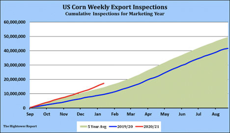 Corn futures traded lower. Rains over portions of Brazil (85 pct coverage) and Argentina (55 pct coverage) offered resistance. Talk of new cases of the virus spreading in China also raised concern over their feedgrain import demand. New US corn export sales to Japan failed to offer support. Most still feel Brazil corn crops could be 3-5 mmt below USDA 109 and Argentina could be 2-4 mmt below USDA 47.5. Managed funds were net sellers of 10,000 corn. We estimate Managed Money net long 404,000 Corn. The long was more than expected and could suggest futures may be overbought. Weekly US corn exports were near 876 mt. Season to date exports are near 17.2 mmt versus 9.4 last year. USDA goal is 64.7 mmt versus 45.1 last year. CH initial support is the gap near 5.17. Mexico announced that will limit imports of GMO corn. Most feel this may not happen given their strong demand for feed corn. Argentina is talking about an export tax for corn. Russia is also talking about an export tax for corn and barley. Ukraine will soon meet to talk about restricting corn exports. Ukraine grain traders appose restricted corn exports.